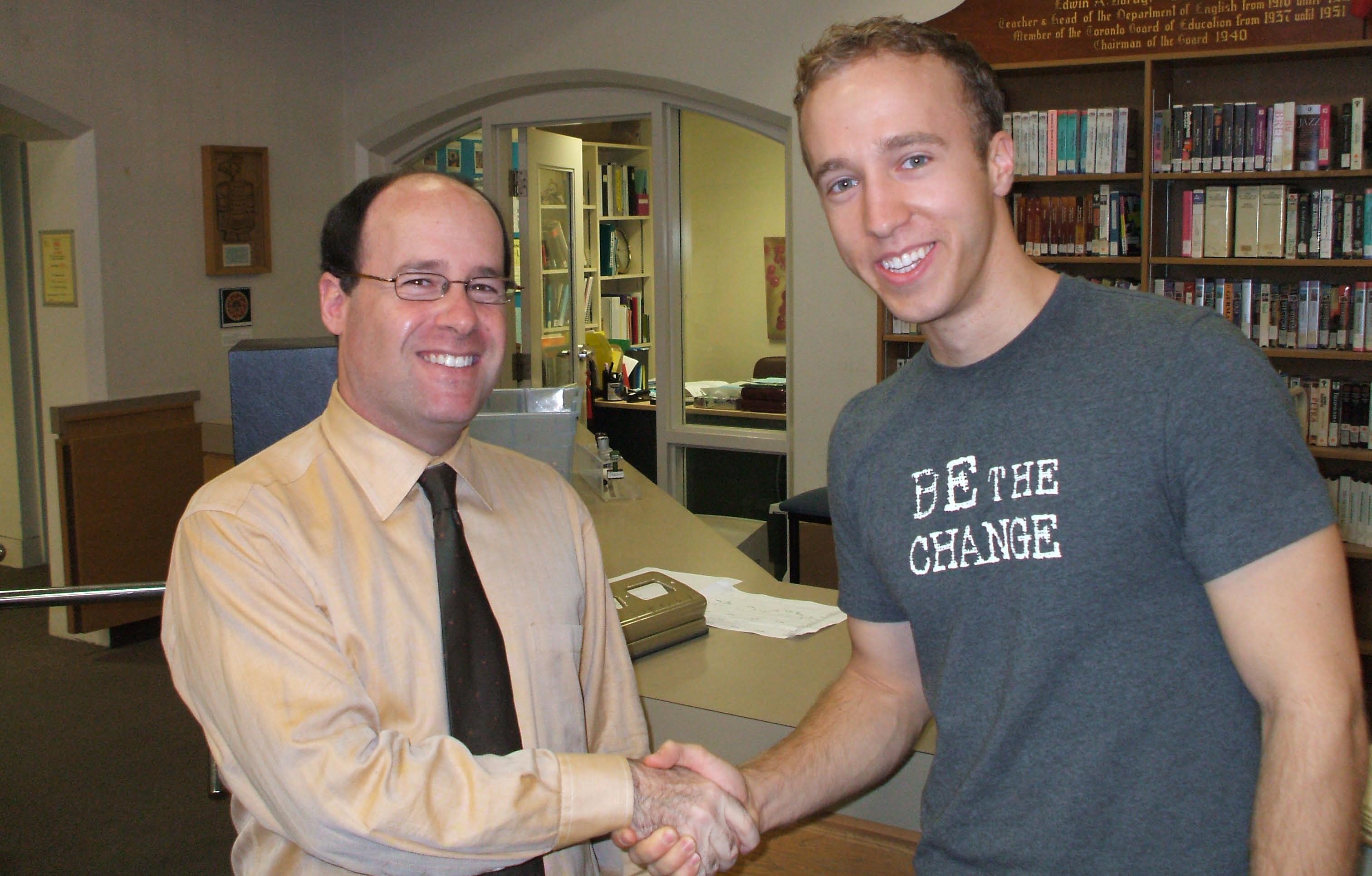 Mr. Gold greets Free the Children founder, Craig Kielburger - Photographer: Tashi Alford-Duguid